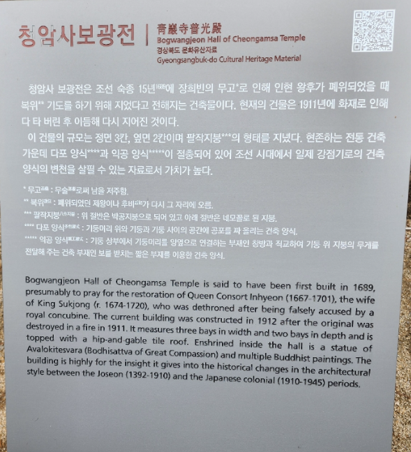 조선 숙종의 비였던 인현왕후, 그녀가 폐비된 후 천일동안 머물며 그 원(願)을 이루었던 청암사 극락전과 보광전