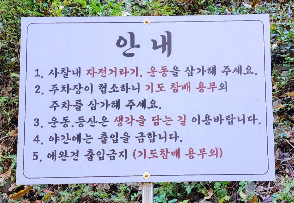 사찰을 방문하시는 분들도 급하지 않으시면...그리고 건강하시다면 산 아래 적당한 지점에 주차를 하고 올라오시면 건강에도 더욱 도움이 되지 않을까 생각됩니다.