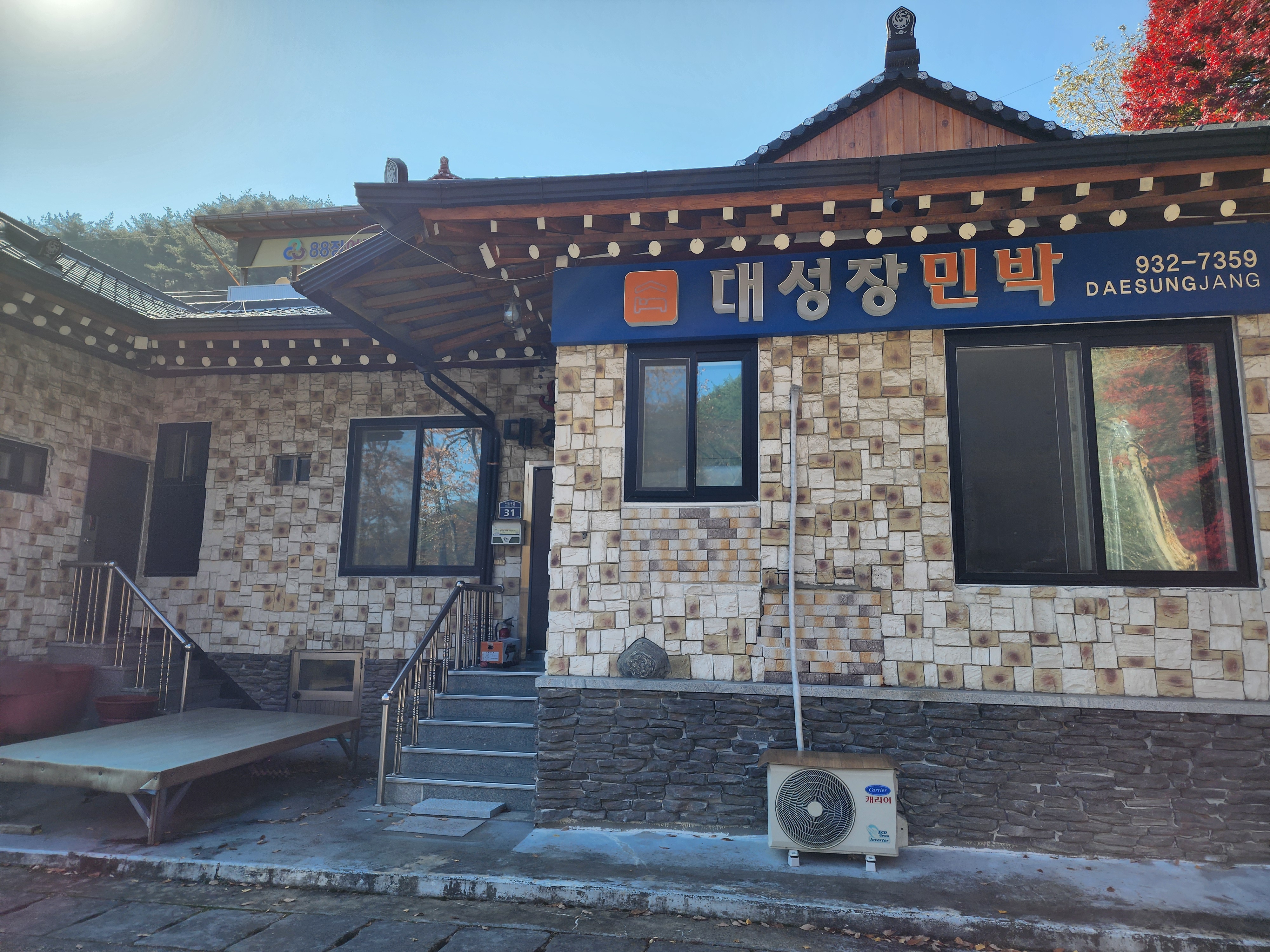 마을 위쪽으로 갔을 때 보이는 민박 집
