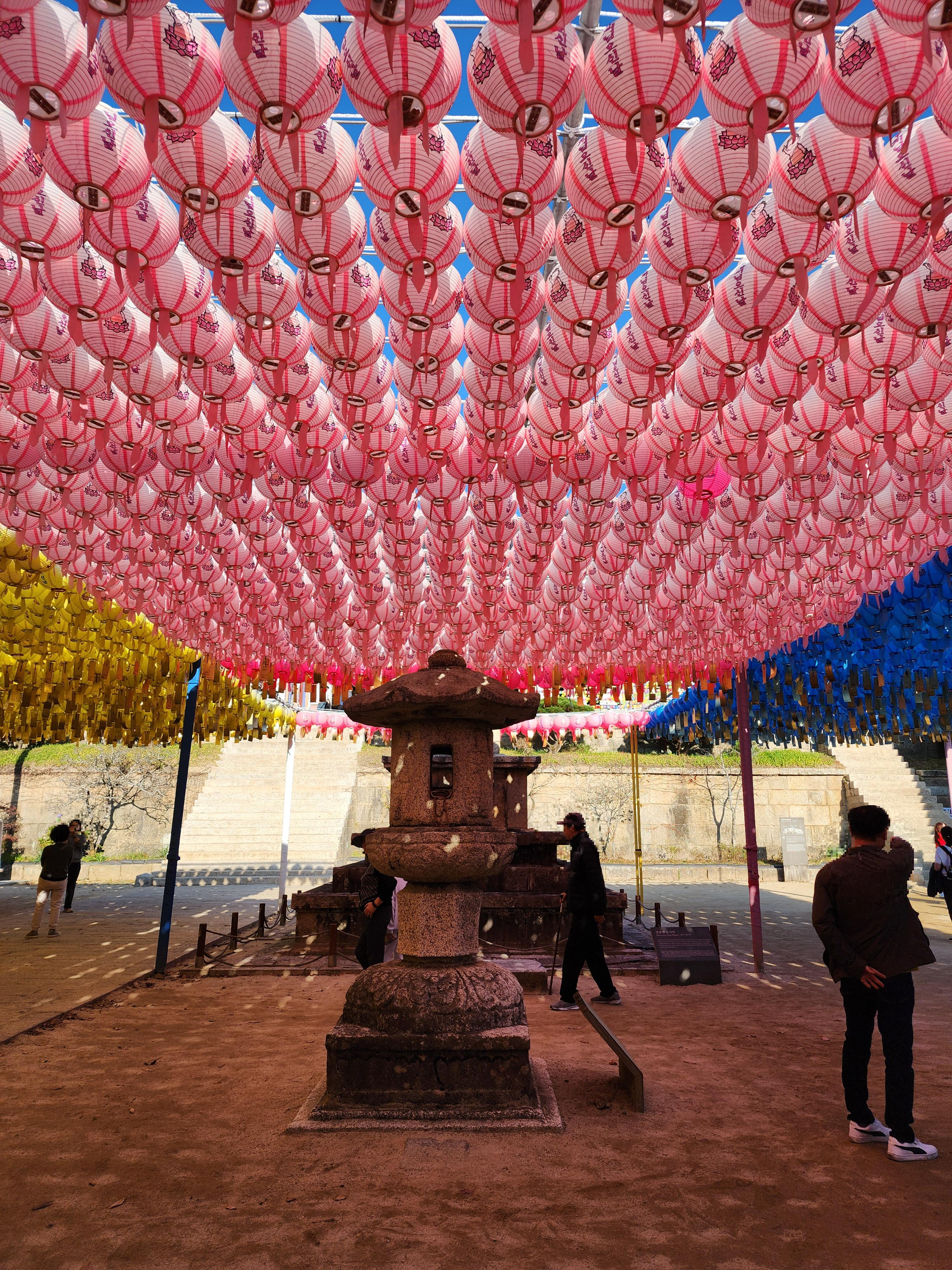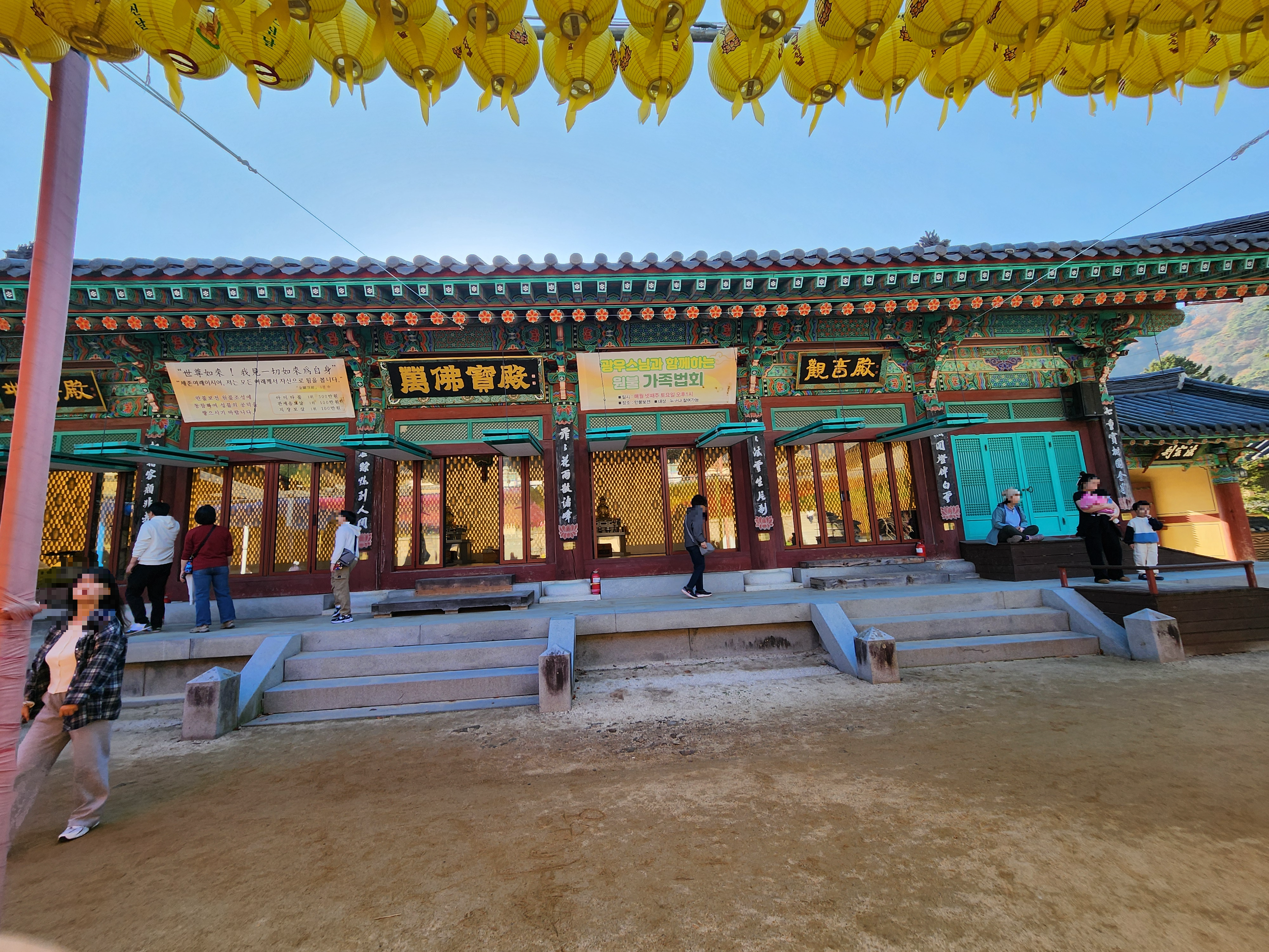 큰 건물인데도 사람들이 얼마나 많이 왔는지 밖에도 많은 사람들이 법회에 참석하고 있네요.