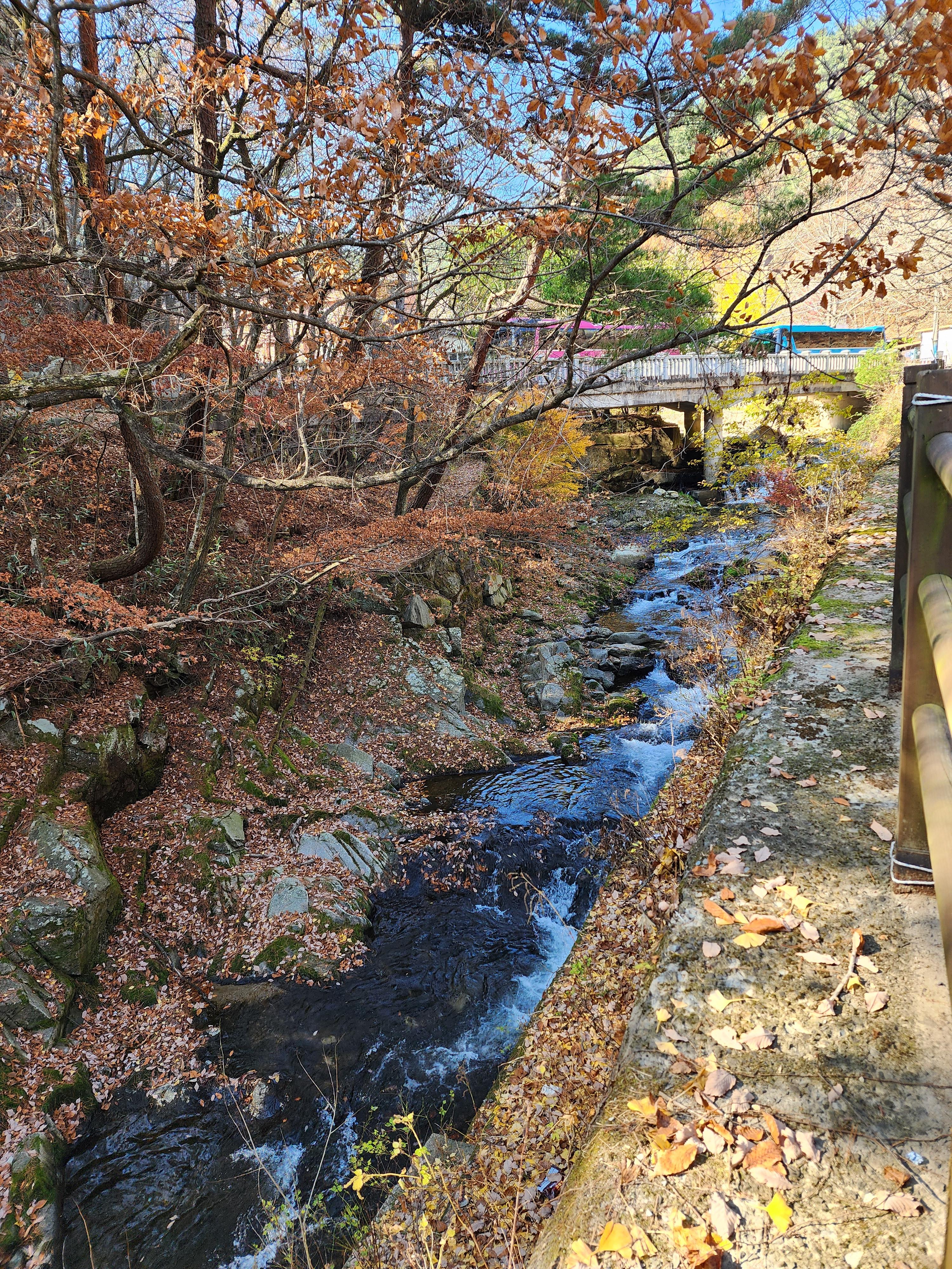 주차 후 길을 건너서 보이는 개울가