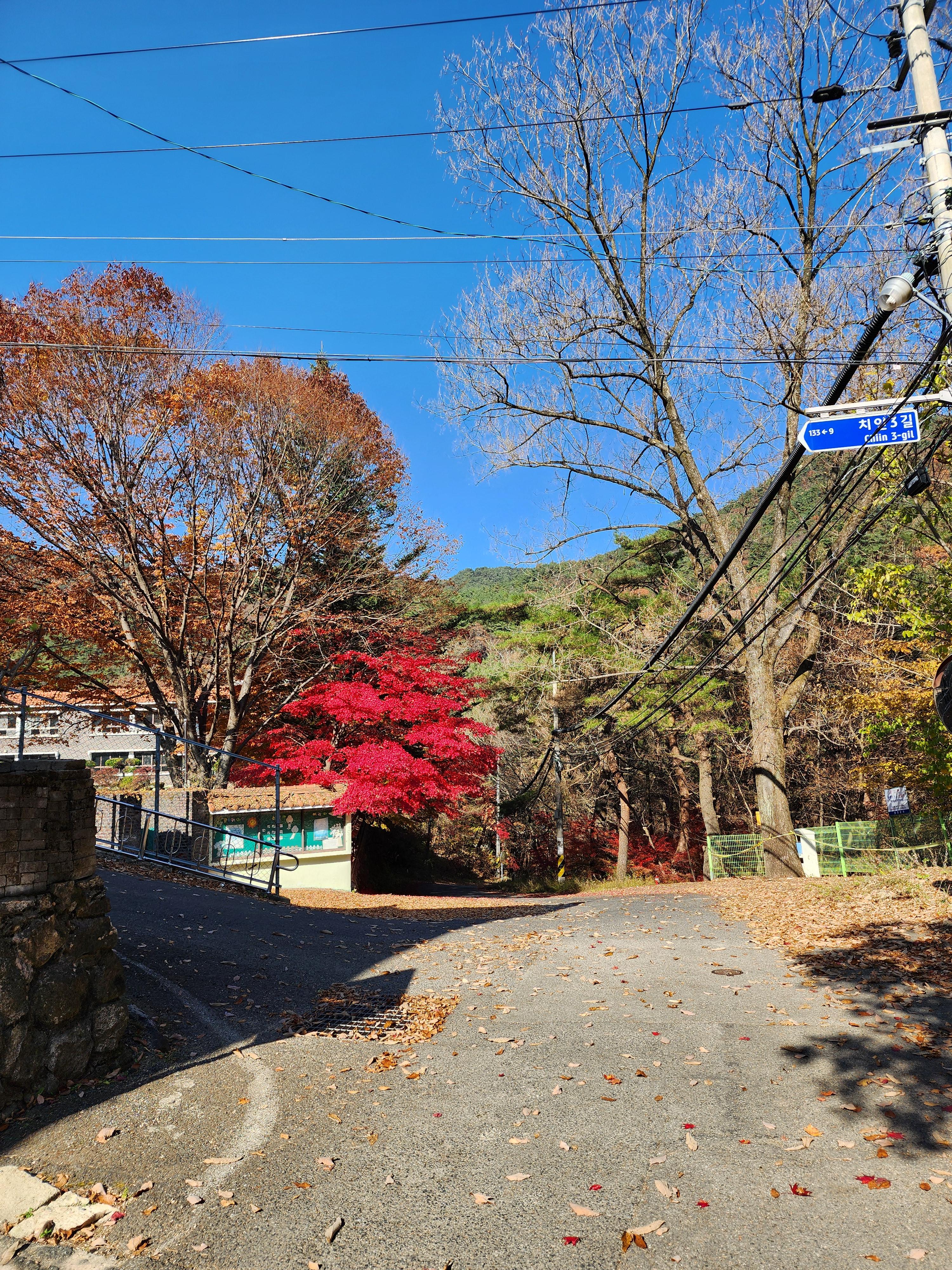 길 곳곳에 아직 가을 단풍이 남아 있습니다.